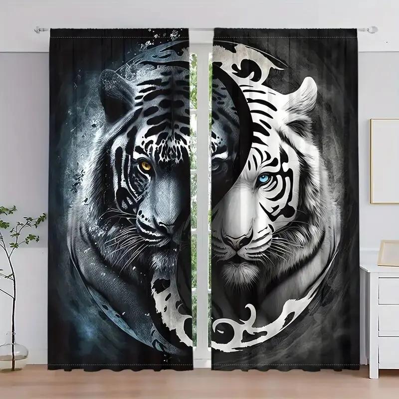 Tiger Printed Curtains Christmas Decorations Bedroom Living Room Home Decoration Made Of Polyester Area Window Treatment