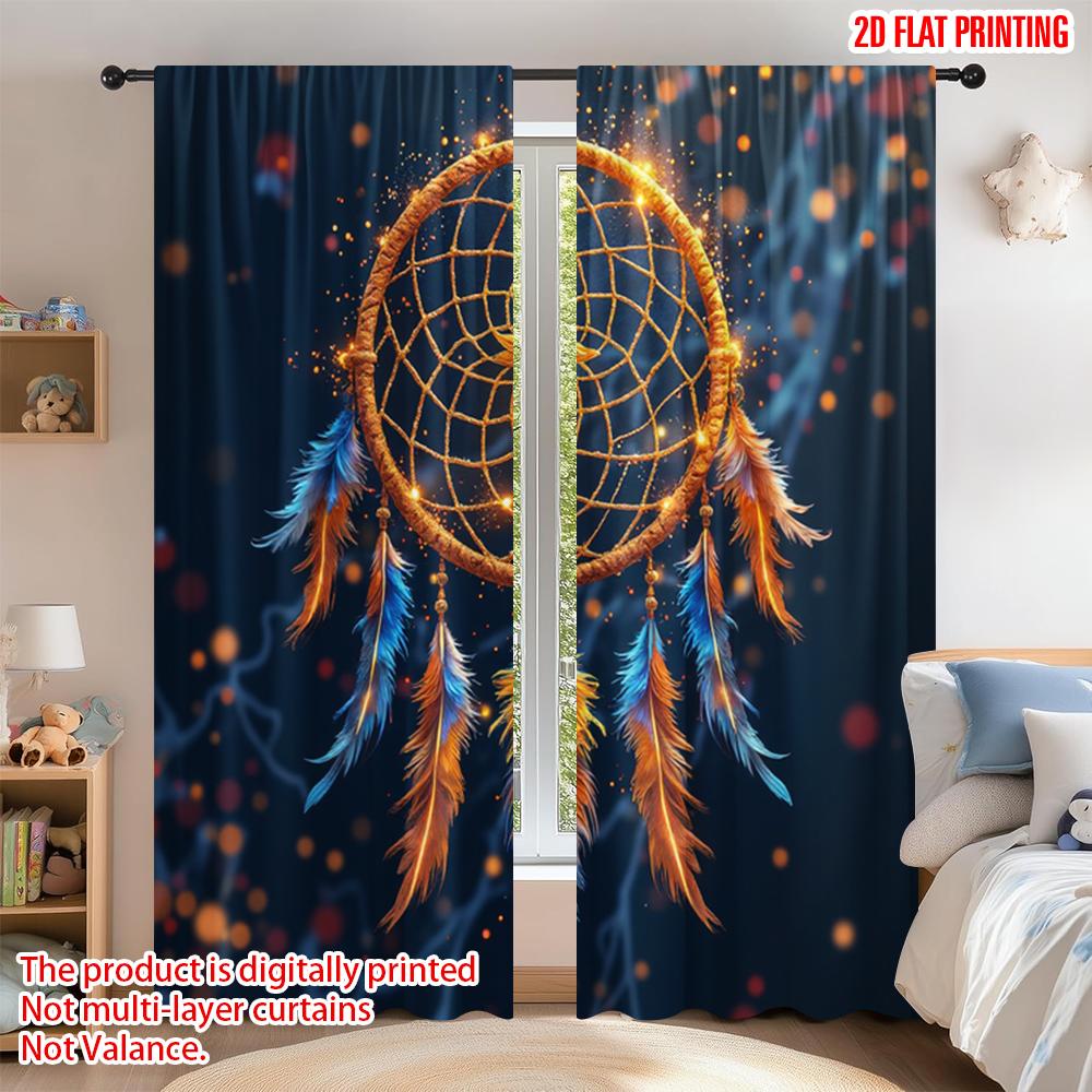 Set Of 2 Bohemian Flat Printing Curtains Dreamcatcher Native American Feathers Digital Printed Polyester Drapes Festive Curtain Made