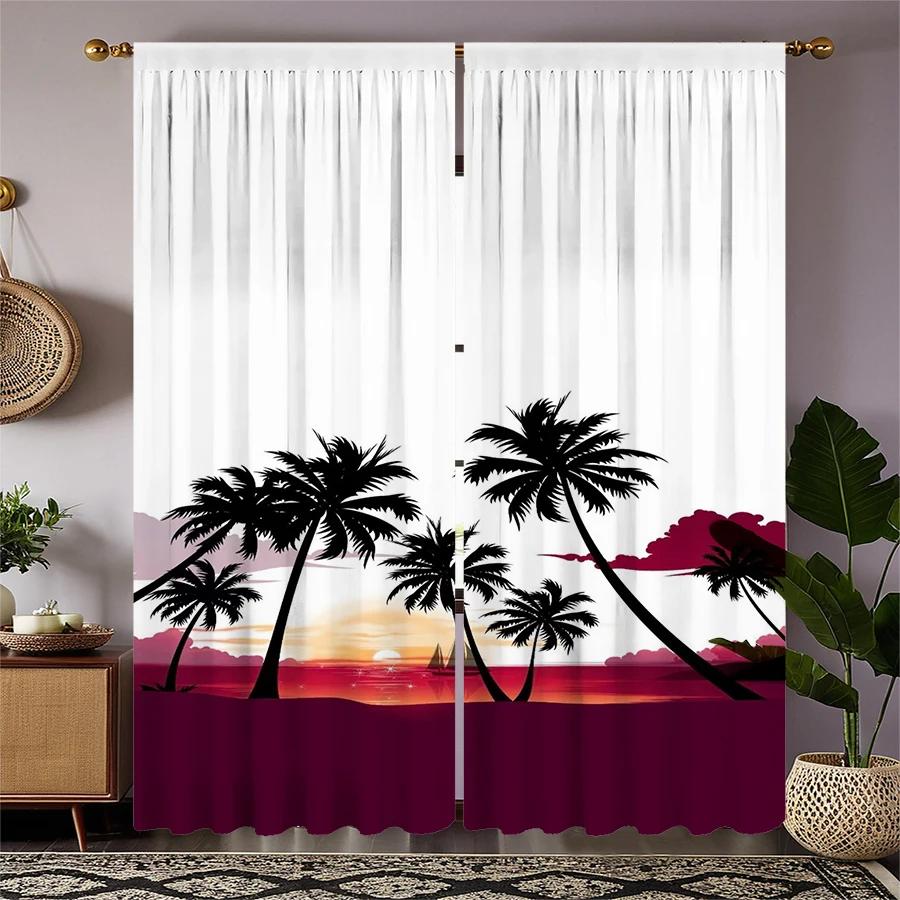 Coconut Tree Landscape Printed Curtains Pole Bag Christmas Decorations Daily Home Room Made Of Polyester