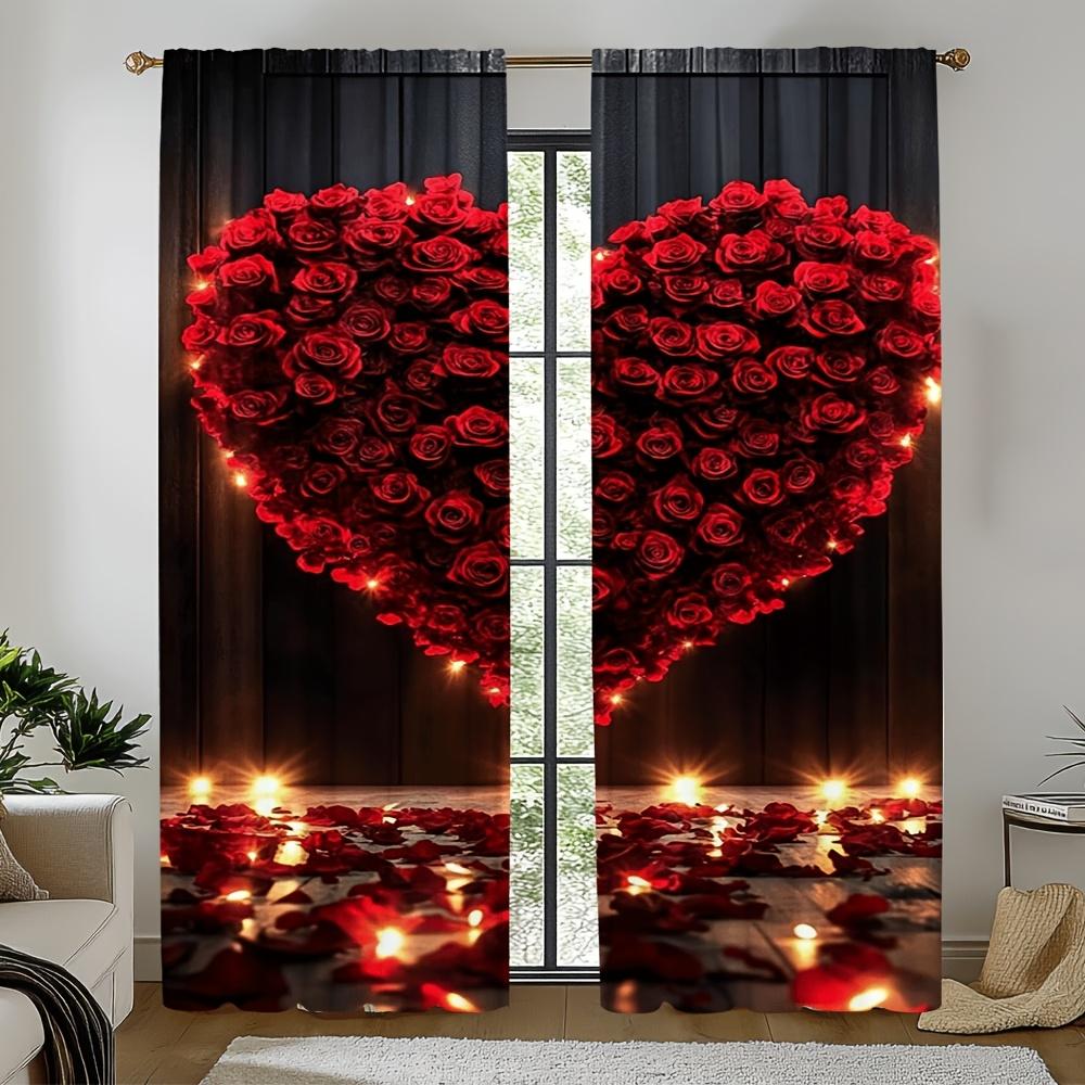 Set Of 2 Valentine Rose Heart Curtains Romantic Design Living Room Bedroom Study Home Decor Light Blocking Curtain For Made Polyester