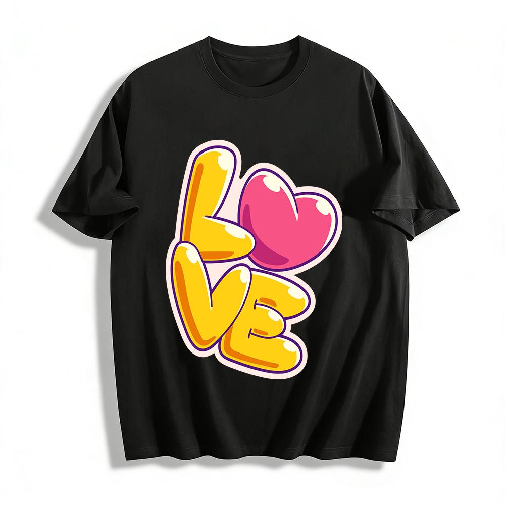 Love Heart Letter Print Casual Tshirt Unisex Loose Fit Crewneck Top For Daily Wear Pure cotton T-shirt