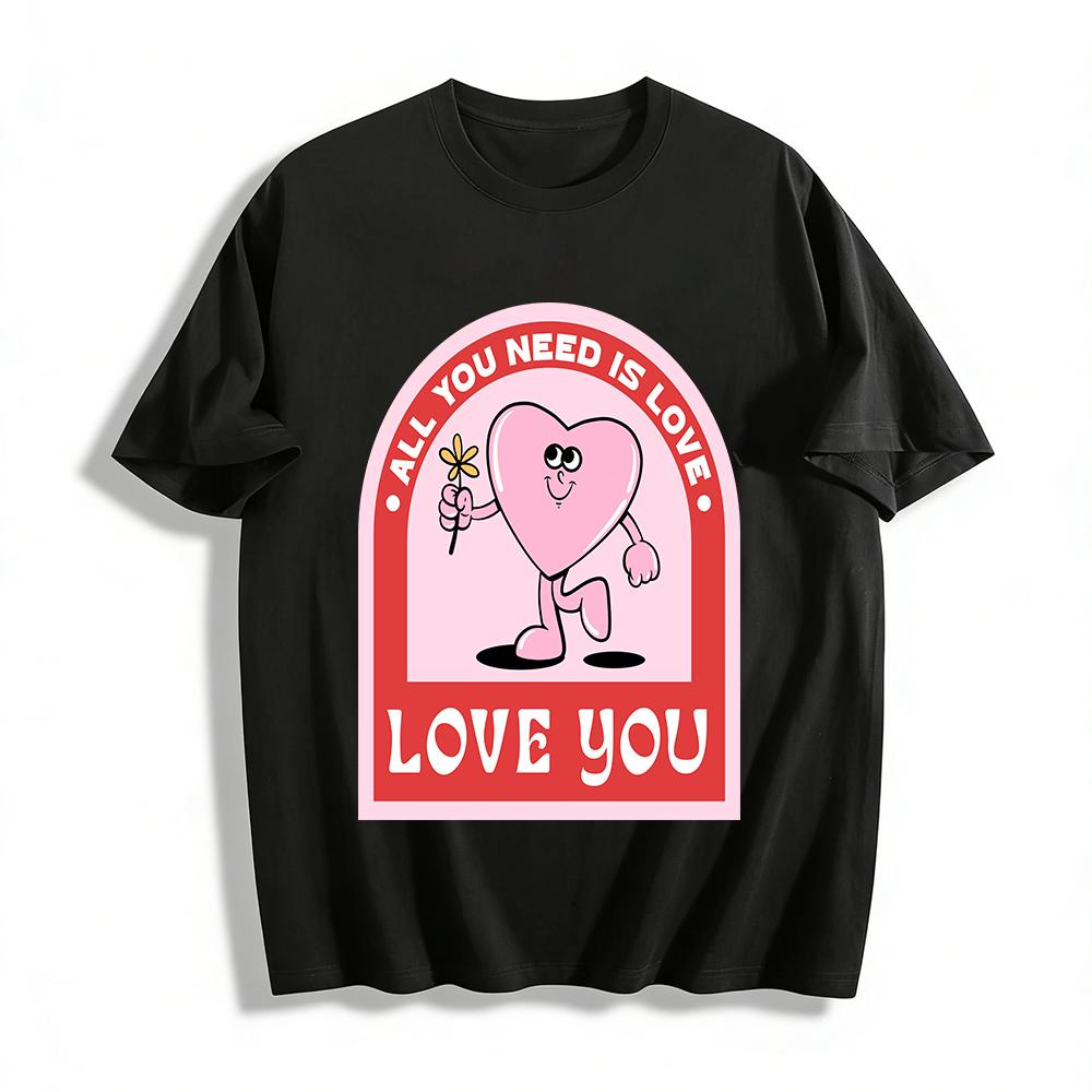 All You Need Is Love Retro Heart Print T-Shirt Casual Cotton Top For Couples And Daily Wear Pure cotton T-shirt