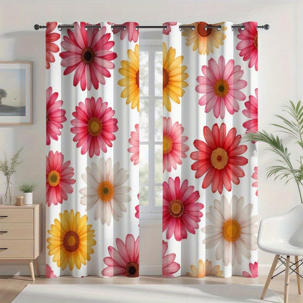 Colorful Daisy Print Curtains Polyester Fabric Suitable Bedroom Living Room Decoration Curtain Made Of Washable Area Ready