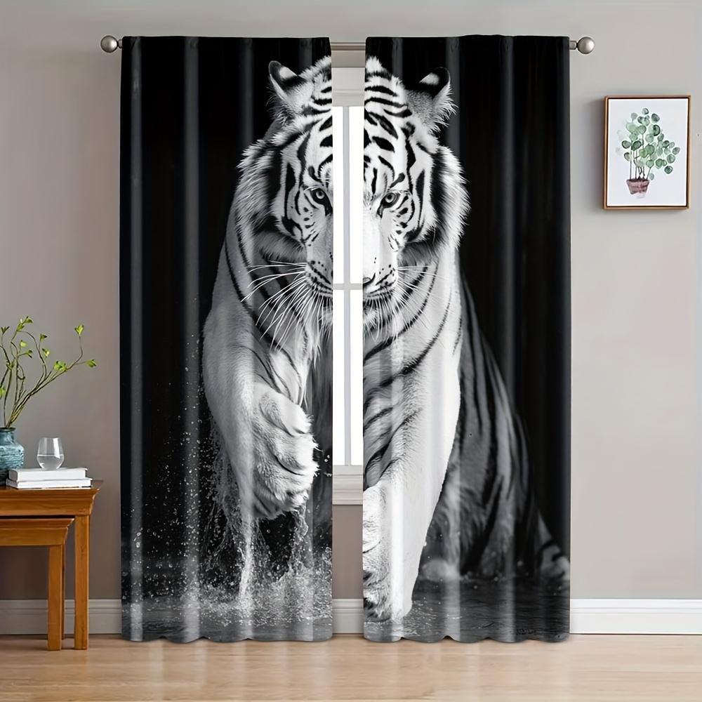 White Tiger Print Curtains Polyester Fabric Suitable Bedroom Living Room Decoration Made Of Machine Washable Great Decor