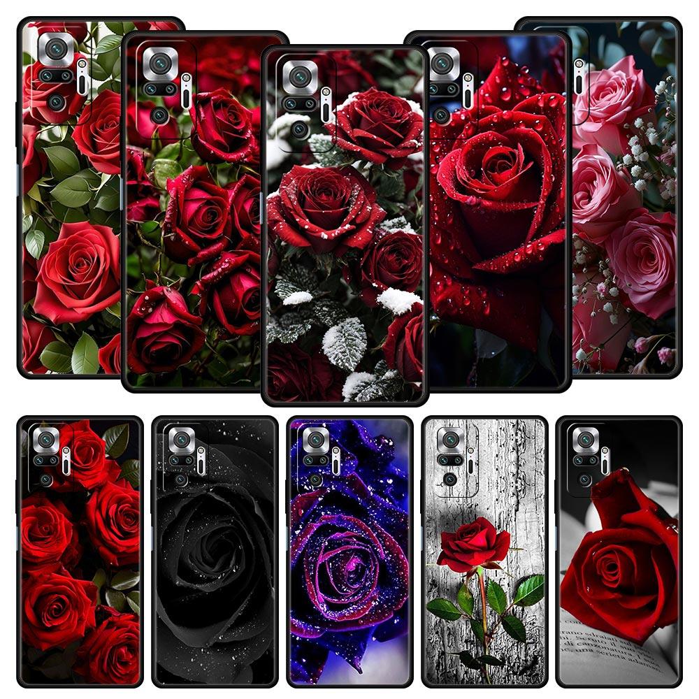 Red Roses Flowers Phone Case For Xiaomi Redmi Note 14 13 5G 10 11 12 Pro Plus 4G 14C 13C 12C 10C Black Cover
