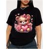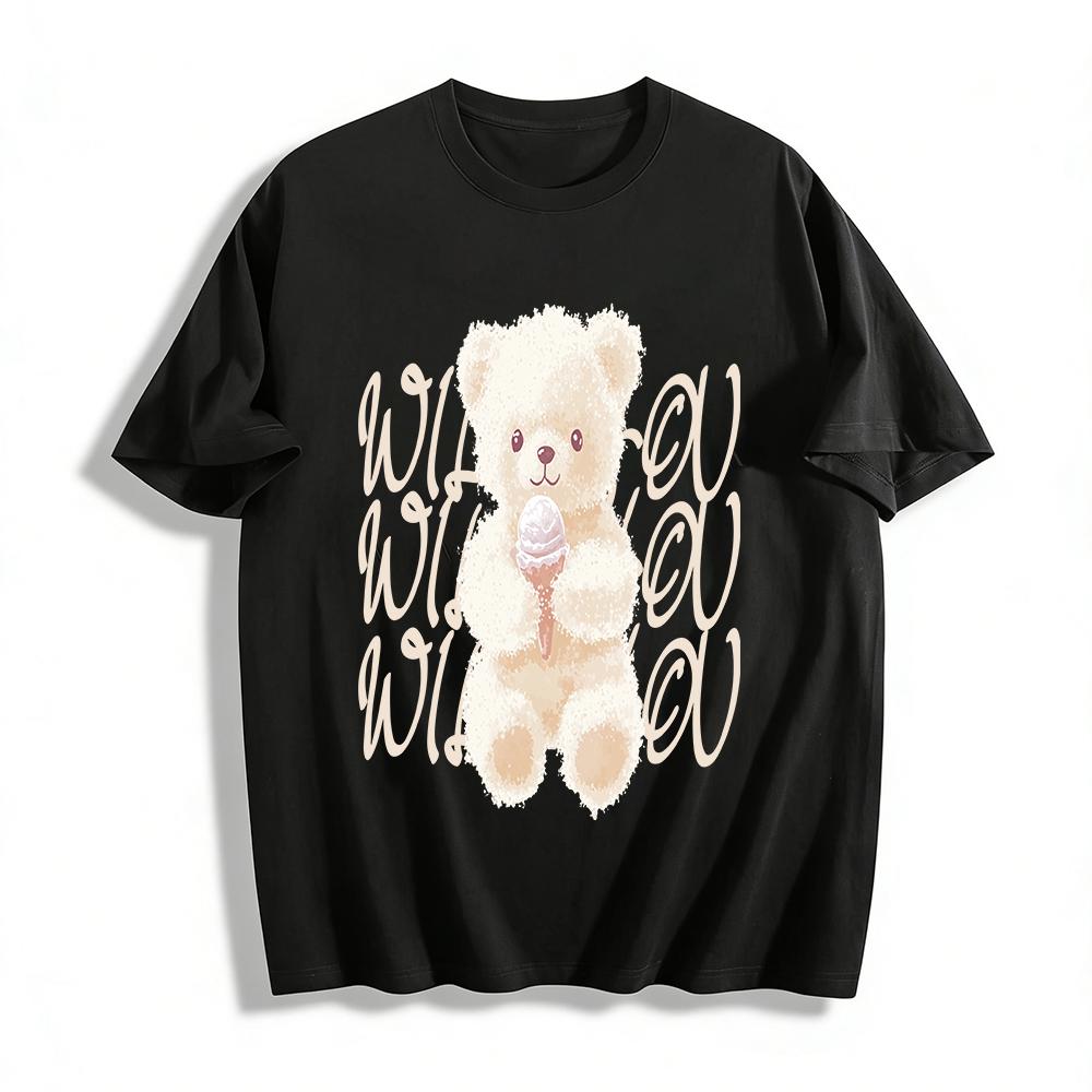 Cute Fluffy Teddy Bear Holding Ice Cream Print Casual Top Unisex Loose Comfortable Daily T-Shirt Pure cotton T-shirt