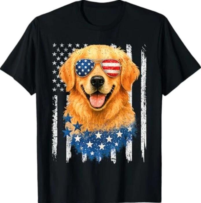 Amerykańska Flaga Golden Retriever USA Retro Koszulka na 4 lipca