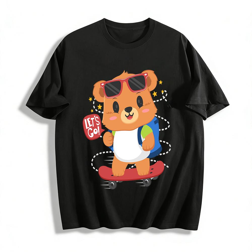 Kids Boys Girls Cute Skateboard Bear Print T-Shirt Casual Breathable Top For Family Trip Pure cotton T-shirt