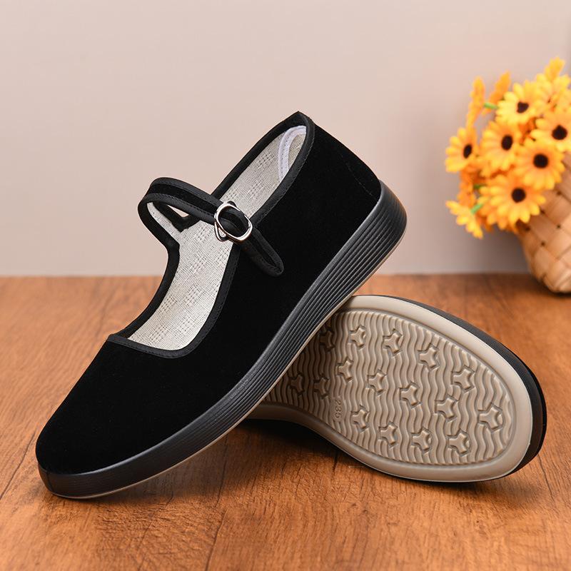 Cloth shoes mother square dancer black belt etiquette shoes hotel work flat nonslip square mouth black cloth shoes