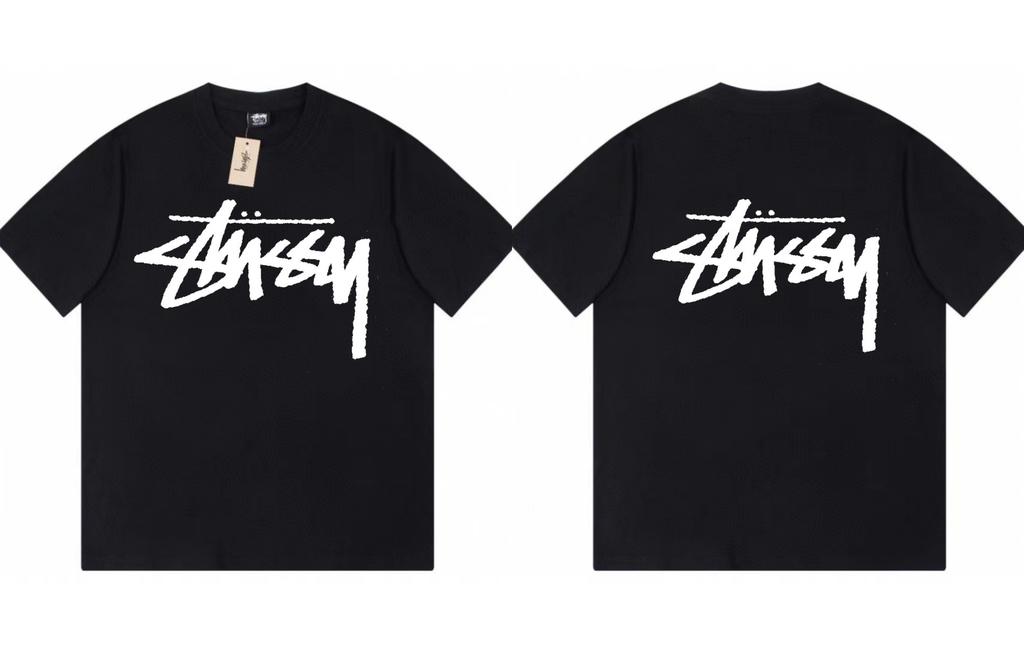 STUSSY koszula z krótkim rękawem z nadrukiem w stylu amerykańskim Czarna 782