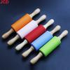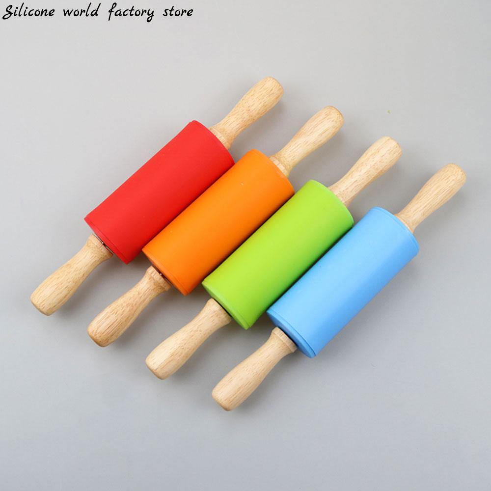 Silicone world Non-Stick Silicone Rolling Pin Wooden Handle Fondant DIY Pastry Dough Flour Roller Kitchen Baking Cooking Tools