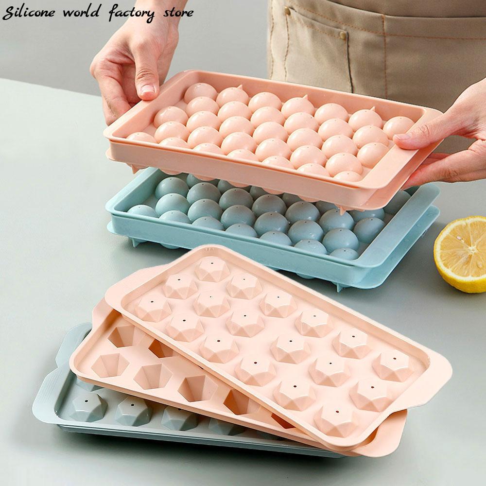 Silicone World DIY Ice Hockey Mold Round Diamond Shaped Ice Cube Molds With Lid Plastic Ice Making Box Ice Tray Kitchen Tools