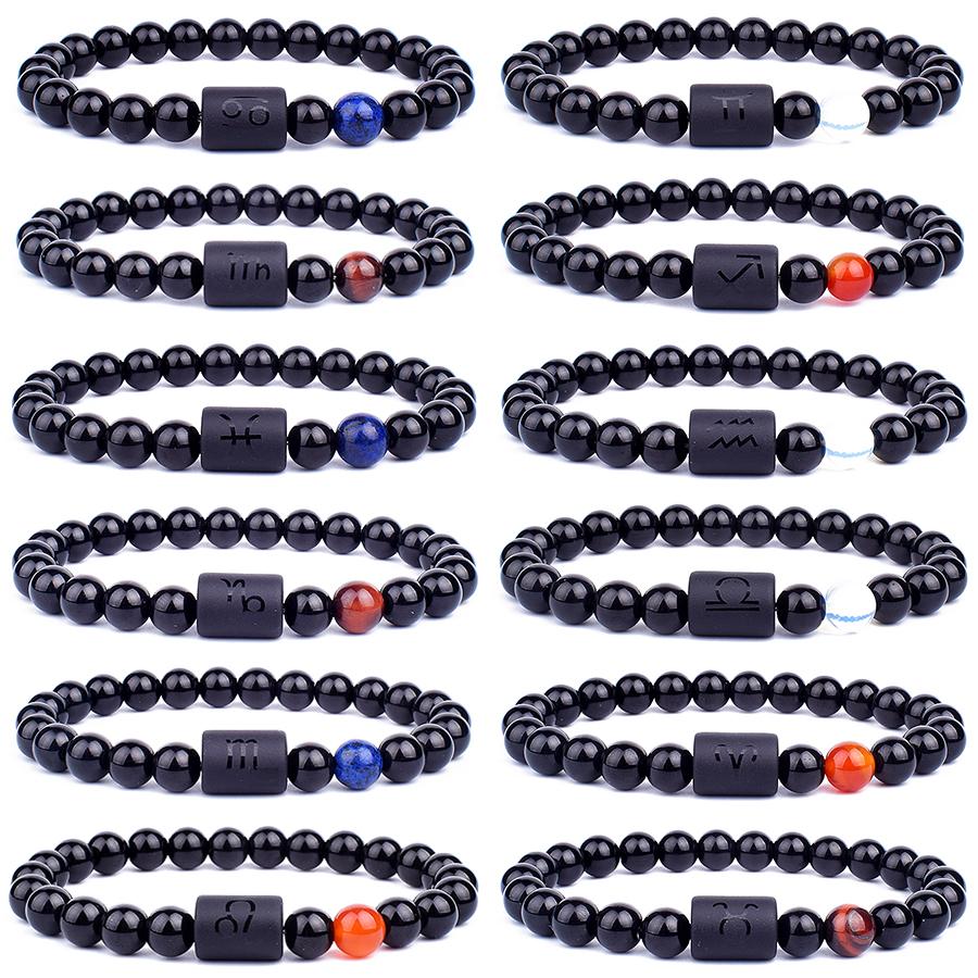8mm Beads 12 Constellation Charm Woven Bracelet Zodiac Sign Black Braided Aries Leo Libra Women Men Couple Bracelet Jewelry Gift