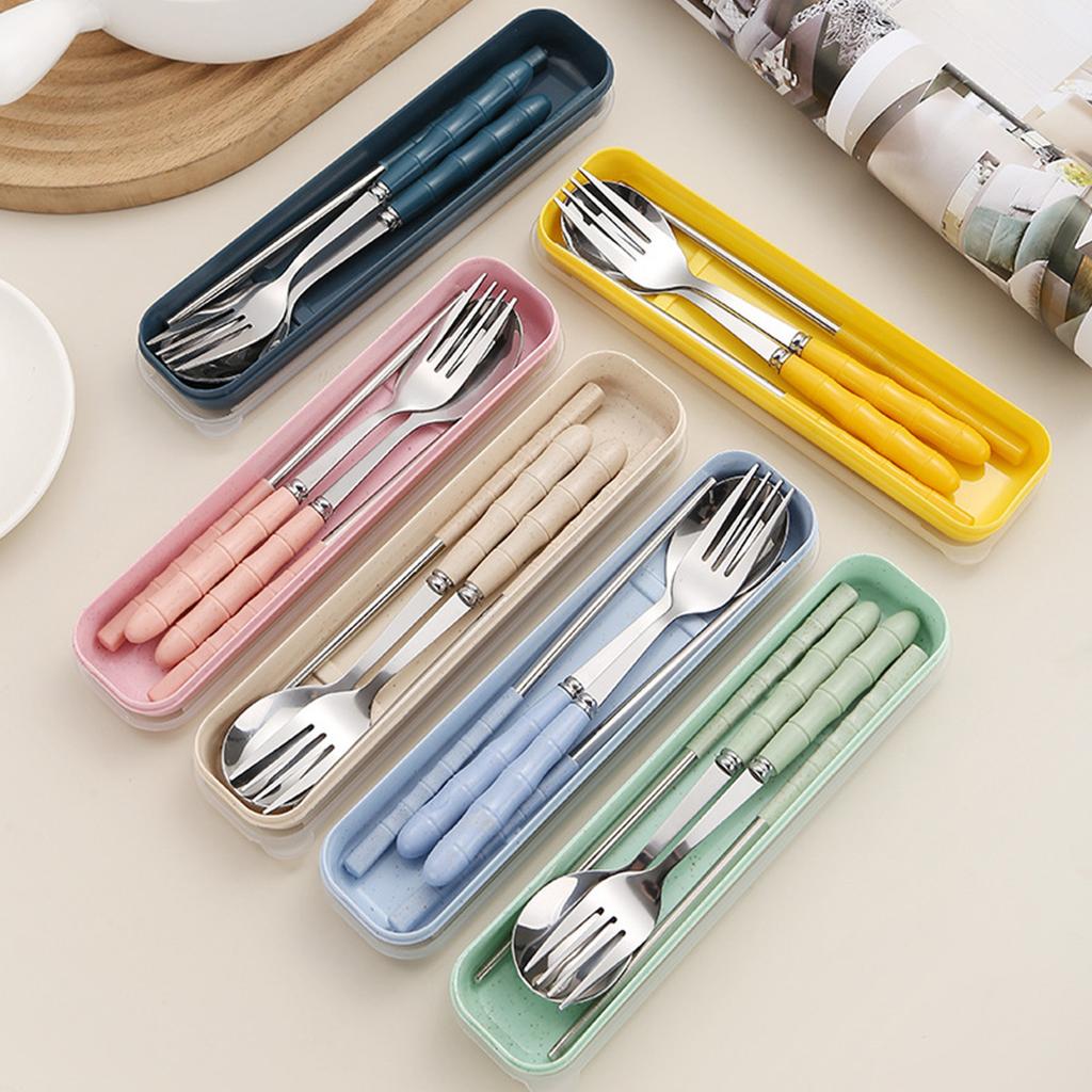 1 Set of Holiday Tableware - 3 Sets Stainless Steel Portable Cutlery (Chopsticks, Spoon, Fork) for Gatherings, Travels, Kitchens, Restaurants