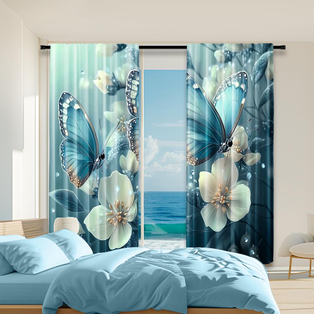 Set Of 2 Versatile Polyester Transparent Curtains Home Decoration Animal Butterfly Use Bedrooms Living Rooms Curtain For Area Made