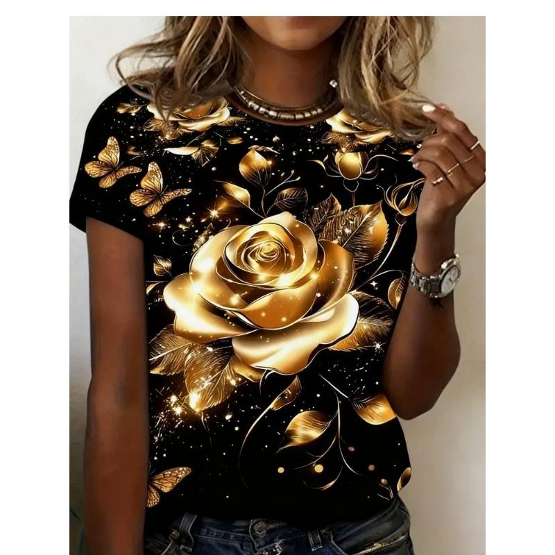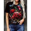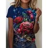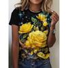 Fashion Women's Crew Neck T-Shirt 3D Flower Color Printing Crew Neck Short Sleeve