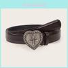Leather Belt With Heart Buckle For Casual Youth Fashion