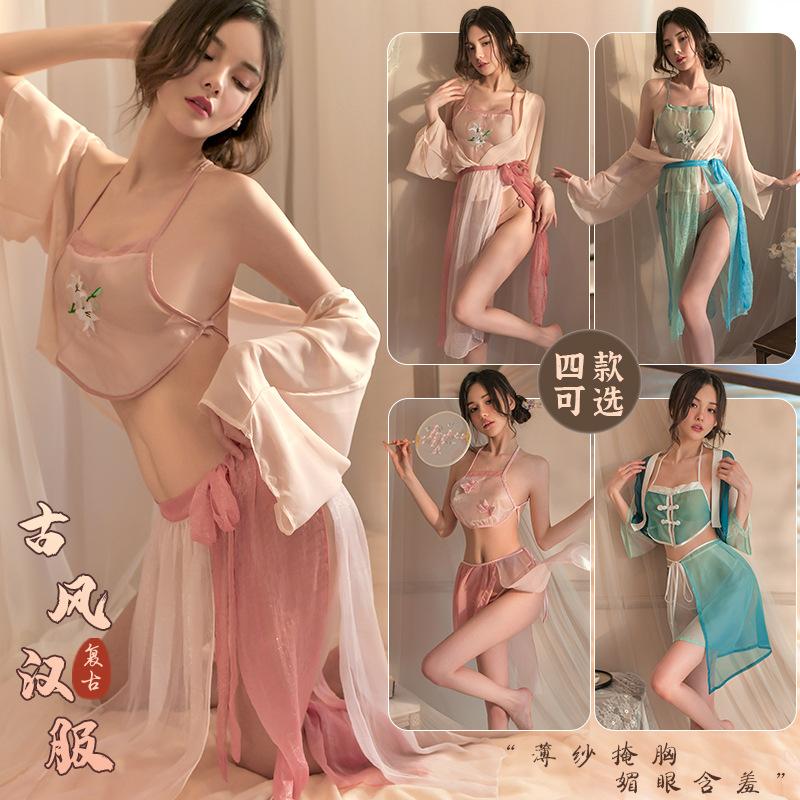 Sexy lingerie women's retro perspective sexy hanfu uniform cosplay suit belly pocket seduction