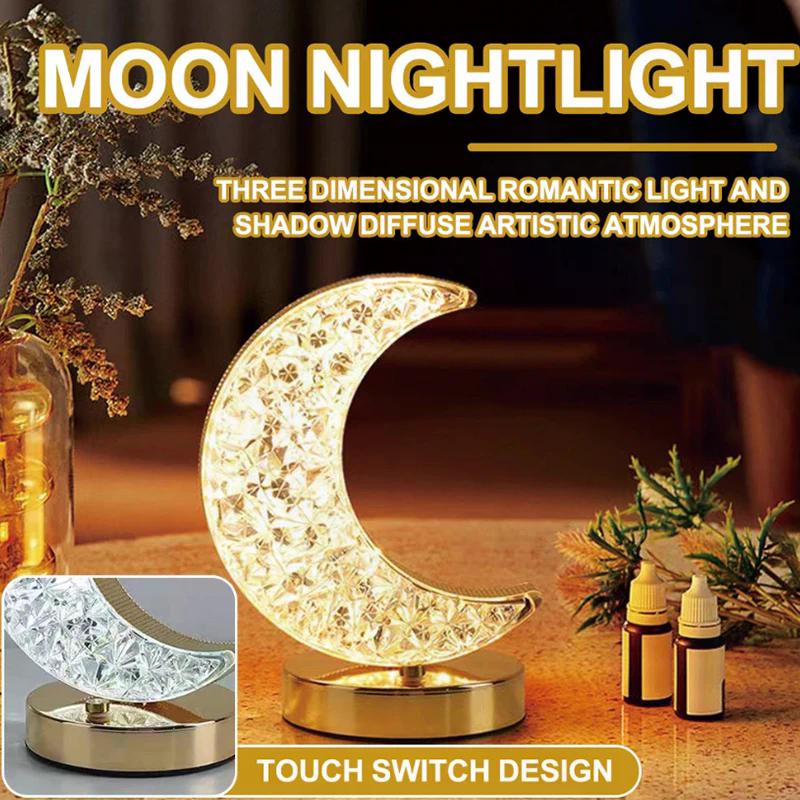 Moon Star Led Night Light Rechargeable Crystal Table Lamp Touch Switch Dimmable Ramadan Room Decor Ambient 3D Moon Lamp Eid Gift
