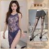 Sexy halterneck lace maxi skirt hot temptation royal sister slit see-through dress erotic lingerie