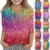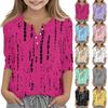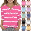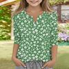 Print Tops For Youth Girls V Neck Button 3/4 Sleeves T-Shirts Trendy Tops Outfit Tees