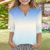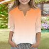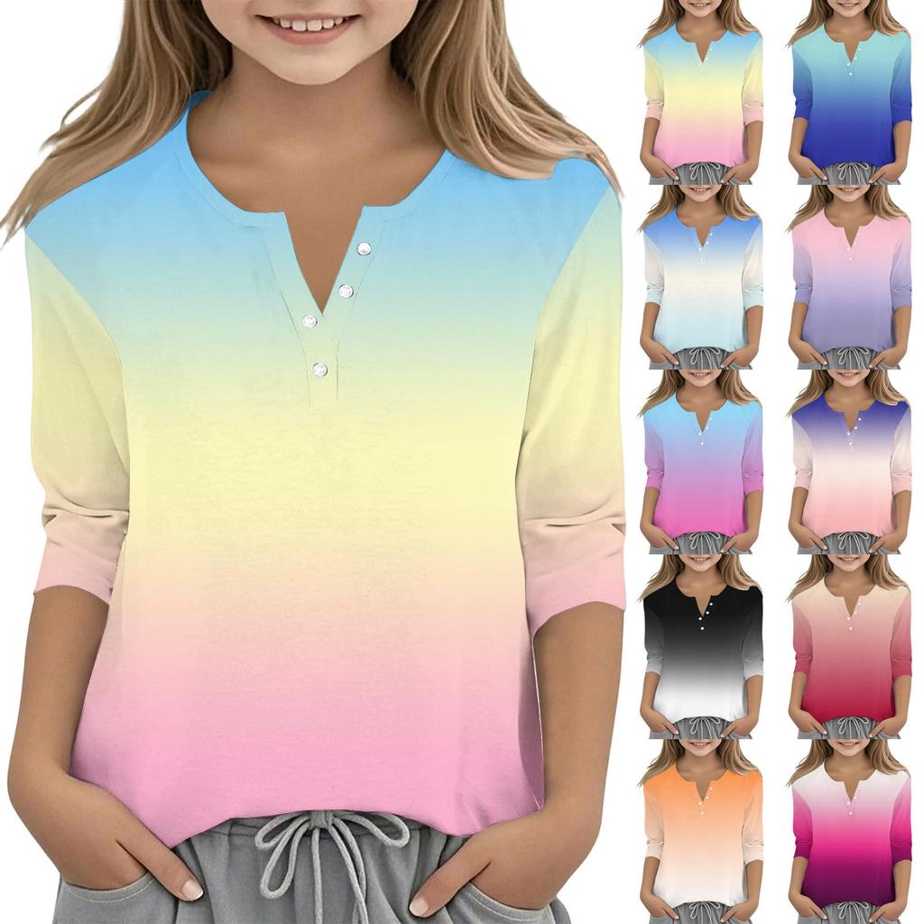 Print Tops For Youth Girls V Neck Button 3/4 Sleeves T-Shirts Trendy Tops Outfit Tees