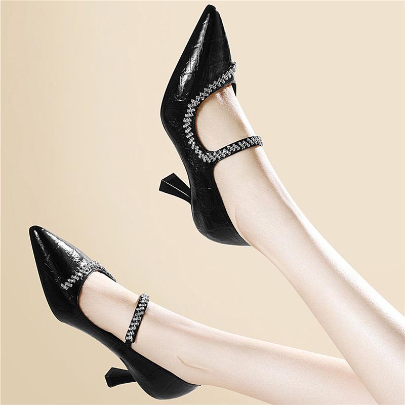 French pointed women's shoes fairy wind early spring single shoes female temperament thin heel rhinestone light luxury high heels