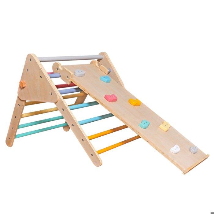 Triangle de Pikler - GINGER HOME 2 en 1 - Toboggan & mur d'escalade - Pliable - Bois massif