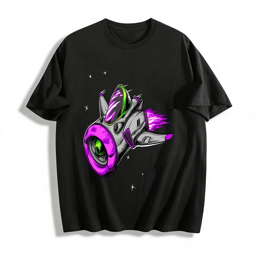 Futuristic Purple Gray Sci-Fi Spaceship Print Trendy Casual Top Pure cotton T-shirt