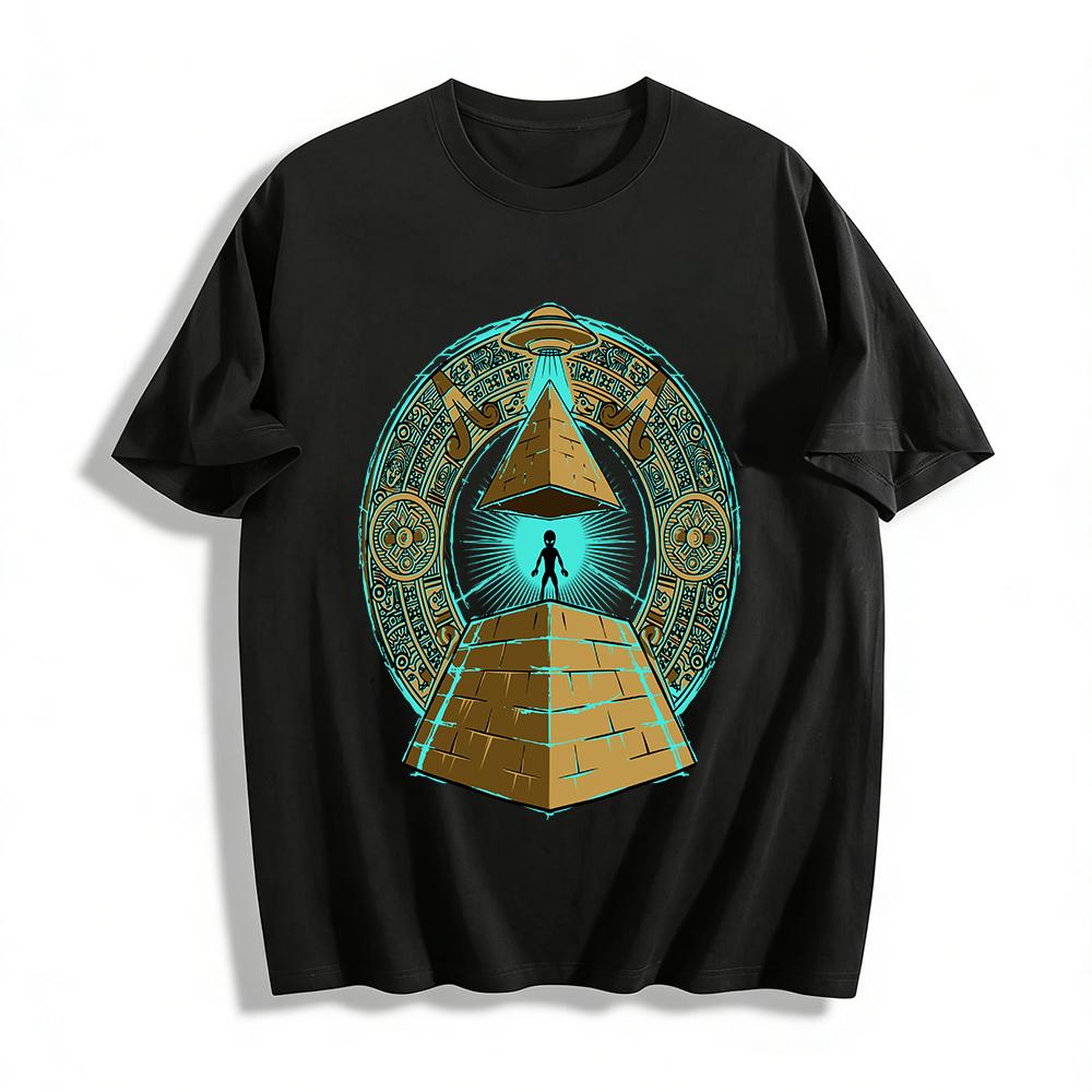 Ancient Civilization Alien Spaceship Pyramid Graphic Tee Pure cotton T-shirt
