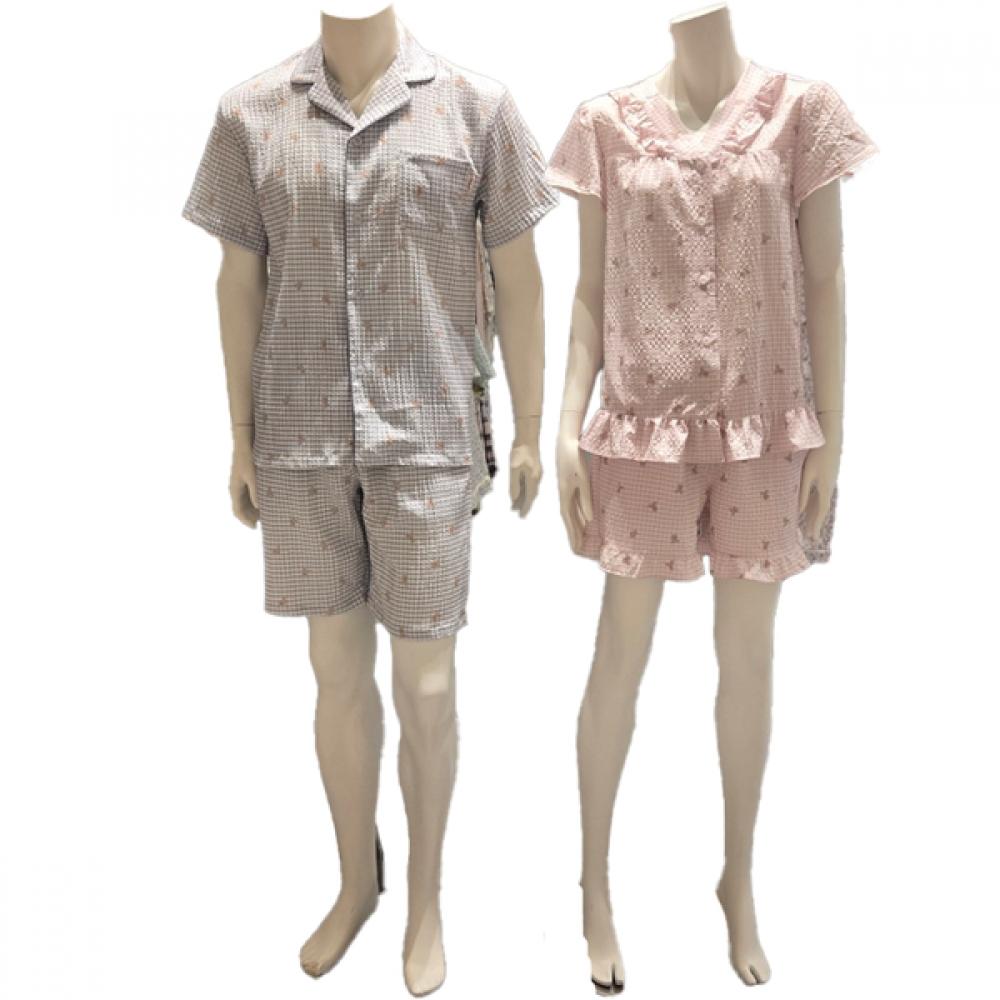The men's/women's short-sleeve pajama set is a couple's sleepwear that is lightweight, cool, and offers excellent comfort. It provides a comfortable sleeping environment and is designed to feel pleasant even during the summer.