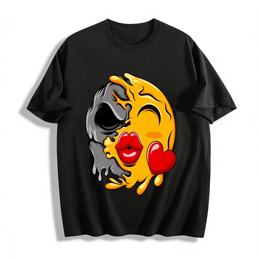 Melting Skull Heart Print Trendy Couples Short Sleeve T-Shirt Pure cotton T-shirt