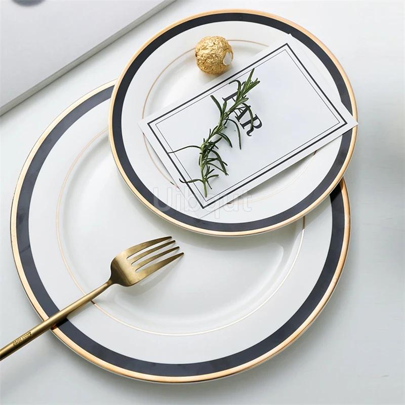 Western style steak plate Salad plate Table setting Dishes European style light luxury black shining Phnom Penh ceramic plate