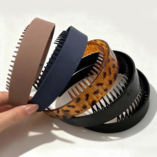 Doskonała konstrukcja antypoślizgowa: Dzięki wbudowanym ząbkom i wyjątkowo grubej, szerokiej konstrukcji, ta plastikowa opaska zapewnia doskonałe trzymanie bez ciągnięcia i zsuwania się.. Szerokie paski acetatowe równomiernie rozkładają nacisk, utrzymując włosy bezpiecznie na miejscu podczas treningów, dni roboczych lub codziennych wyjść.