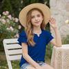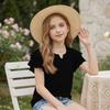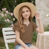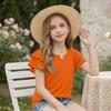 Dziewczęcy T-shirt z dekoltem V i falbanką - Krótki rękaw, letnia bluzka