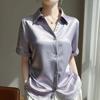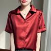 Summer Women Satin Short Sleeve Shirt Elegant Collar Blouse