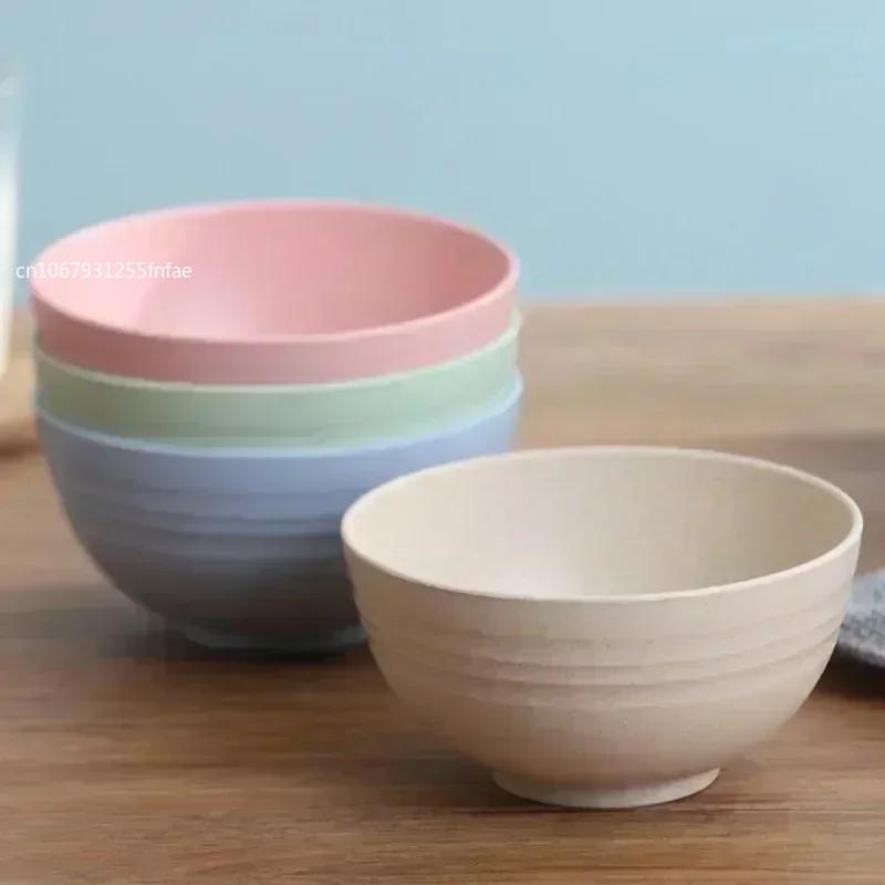 Wheat Straw Anti-Fall Bowl Dinner Bowl Plastic Fiber Divided Dining Bowl Cartoon Snack Tray Breakfast Dishes Kitchen Tableware