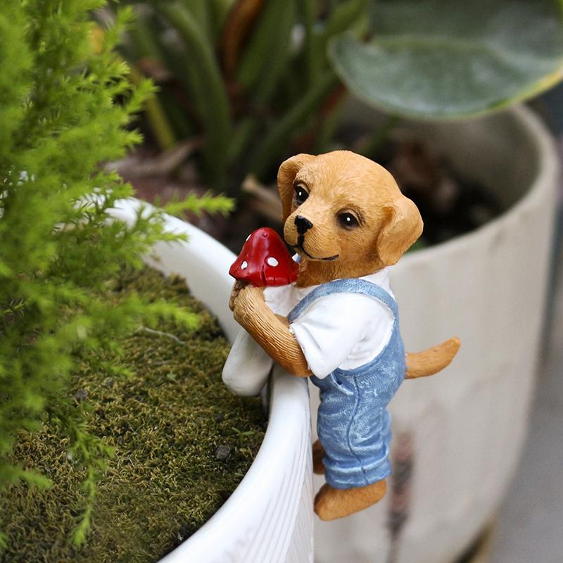 Cute Hanging Dog Figurine Flower Pot And Vase Hugger Resin Dog Bonsai Terrarium Edge Decor Planter Pot Hanger Garden Ornaments