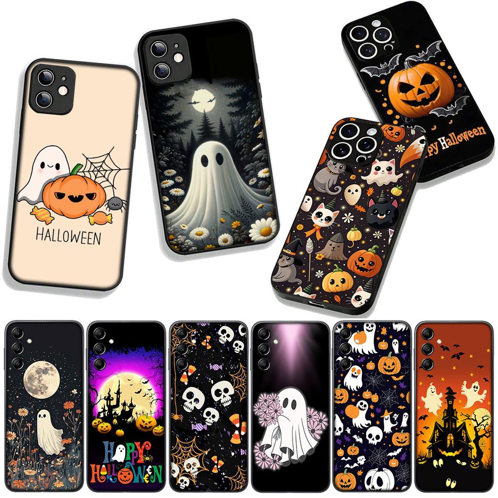 for Apple iPhone 16 15 14 Plus 13 12 Mini 17 Pro Max + ProMax 16E Air 15+ Cover Case Little Ghost With H-Halloweens Pumpkin
