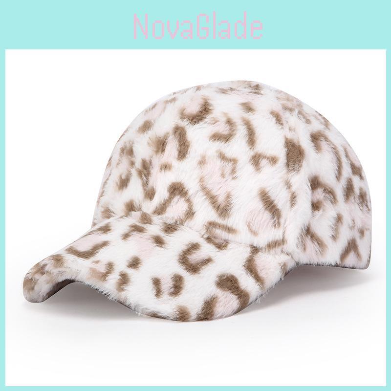 This winter baseball cap features a plush leopard print design with a round crown and short brim, delivering a stylish and cozy look. Made of soft fabric with 21%30% content, providing warmth during cold seasons. Suitable for autumn and winter casual wear, it complements daily outfits. Wipe clean with a damp cloth to maintain its appearance.