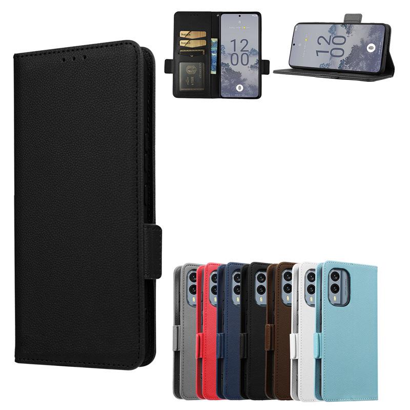 Nokia X30 5G Flip Lanyard Case with Card Slot - Lychee Leather Pattern, Solid Color