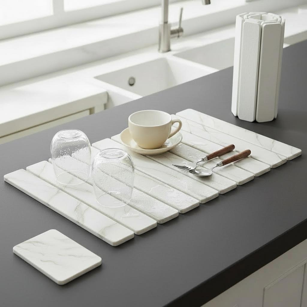 Tired of messy, slow-drying dish racks and soggy cloth mats? Our Premium Diatomite Drying Mat revolutionizes your kitchen cleanup. Crafted from a single slab of natural, food-safe diatomaceous earth, this mat works on a microscopic level to suck moisture away at lightning speed. Your dishes and glasses air-dry in minutes, not hours. More importantly, its rapid evaporation leaves no chance for mold or unpleasant odors to develop—a common issue with traditional mats. We built it to last. Unlike cheaper composite mats, ours is solid and won’t crack under normal use. Cleaning is a breeze: a quick rinse restores it like new. Plus, the elegant stone finish complements any kitchen decor, from modern to farmhouse. Use it with confidence as a daily drying station, a protective pad for hot pots, or a stable base for small appliances. It’s the versatile, hygienic, and stylish upgrade your kitchen needs.