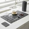 【Multi-Functional Kitchen Helper】Perfect for drying dishes, glasses, and cutlery. Ideal as a dish drying mat, counter protector, sink side mat, or even a trivet for hot pots. The sleek, minimalist design complements any kitchen decor. The soft, non-abrasive bottom prevents scratches on granite, marble, or wooden countertops.