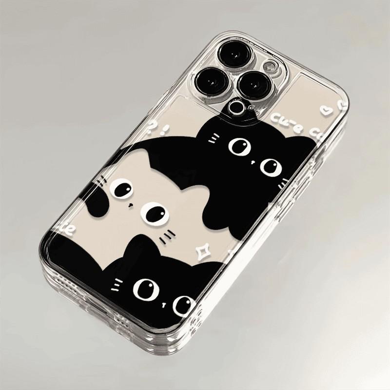 Black & White Cat Phone Case for iPhone 12-17 Pro Max, Transparent & Soft