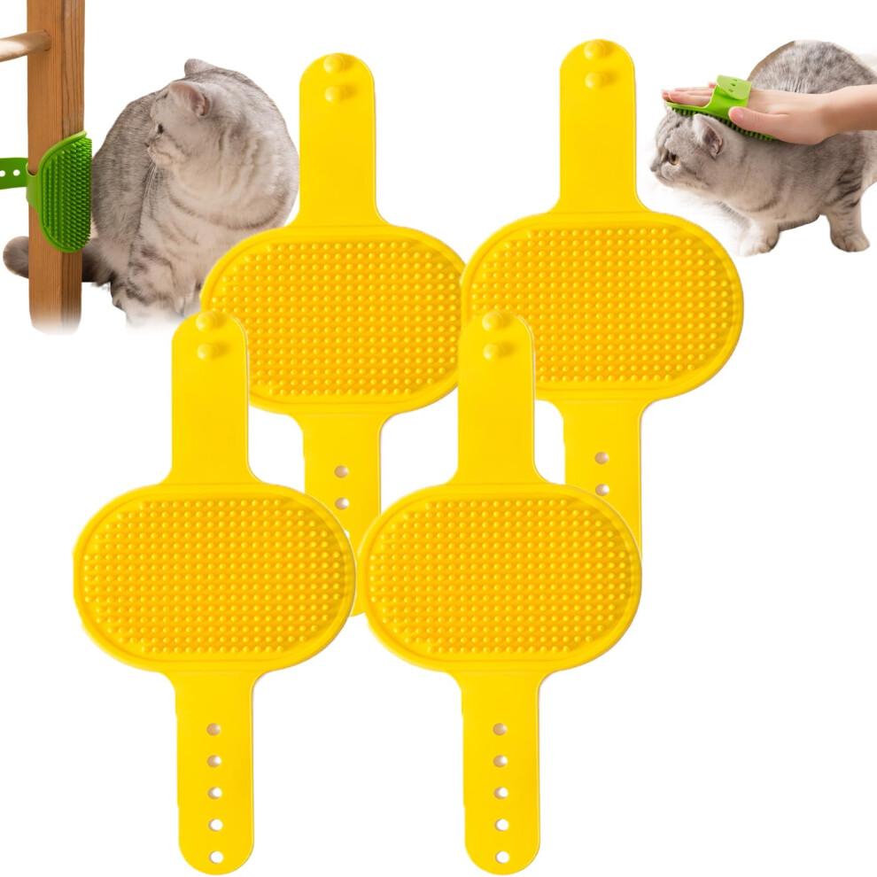 Silicone Grooming Strap Pad for Cats - 4PCS Self Groomer Cat Rubbing Post, Yellow Indoor Cat Grooming Tool