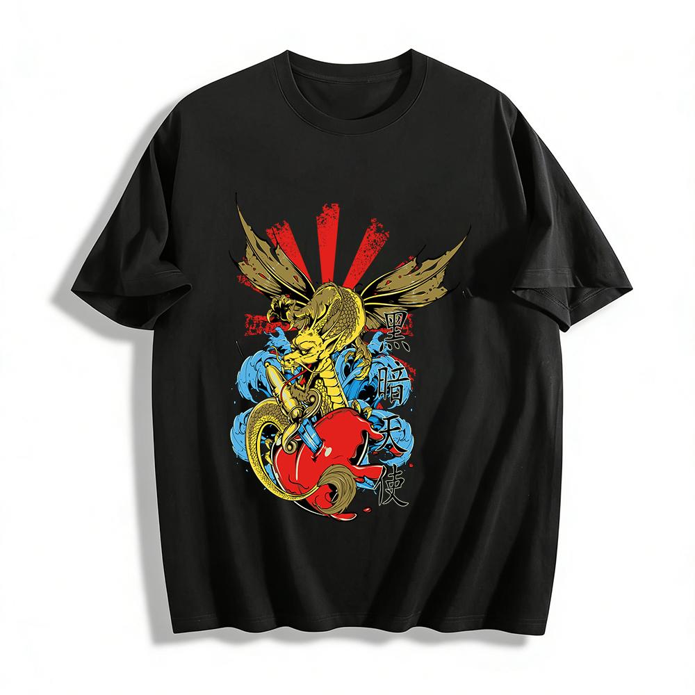Dark Angel Winged Dragon Print Trendy Casual Short Sleeve Top Pure cotton T-shirt