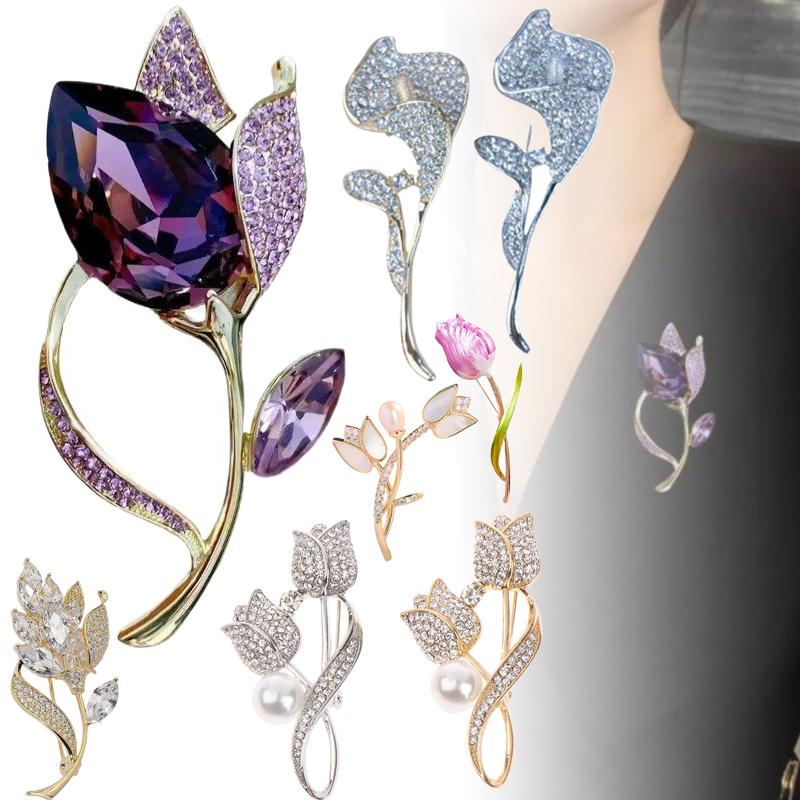 Vintage Luxury Purple Crystal Tulip Flower Brooches For Women Elegant Clothes Suit Accessories Brooch Pins Party Jewelry Gifts