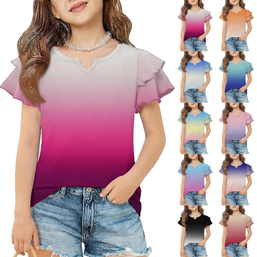 Girls' V-Neck Ruffle Tee - Short Sleeve Summer Blouse