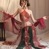 New antique Dunhuang Feitian Exotic Hanfu Uniform Suit Sex Underwear Sexy Printed Perspective Belly Pocket