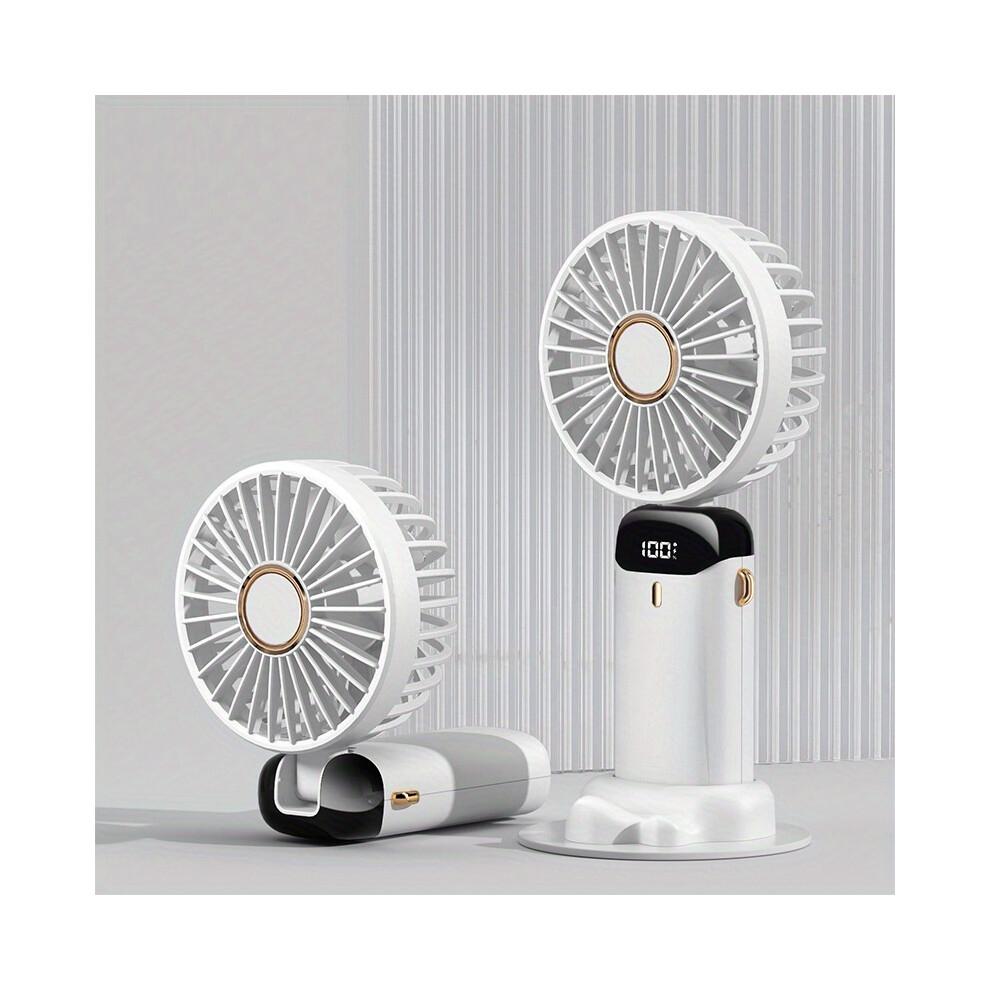 (Biały) 1 szt. ładowany ręczny mini wentylator z 5 prędkościami i wyświetlaczem LED Opis